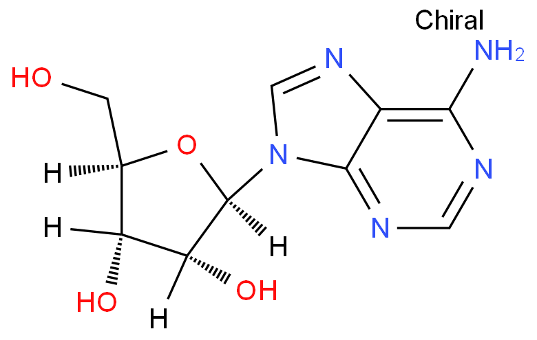 腺苷 (Adenosine)是核苷的一種,各由核糖(呋喃核糖)與腺嘌呤的一部分組成,中間由β-N9-配糖鍵(β-N9-glycosidic bond)連結(jié)。腺苷在生物化學(xué)上扮演重要角色,包括以腺苷三磷酸(ATP)或腺苷雙磷酸(ADP)形式轉(zhuǎn)移能量,或是以環(huán)狀腺苷單磷酸(cAMP)進(jìn)行信號傳遞等。此外腺苷也是一種抑制性神經(jīng)傳導(dǎo)物(inhibitory neurotransmitter),可能會促進(jìn)睡眠。